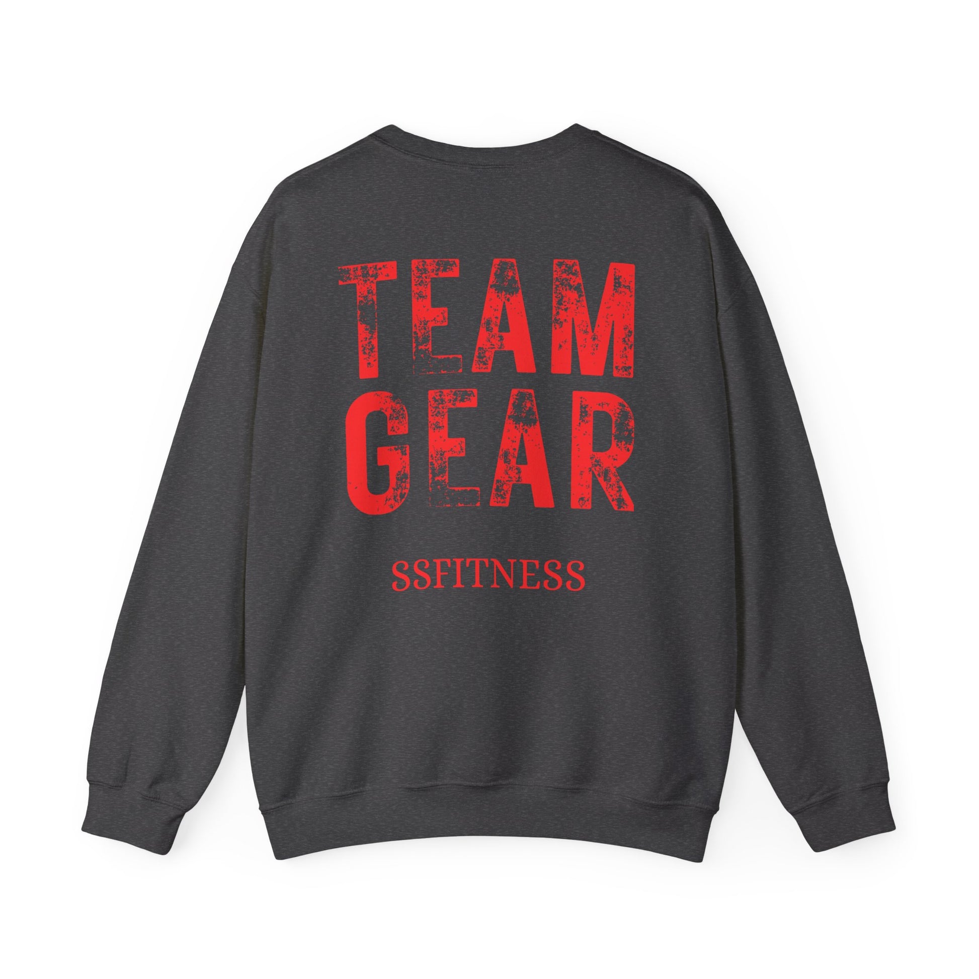 Fitness Crewneck Sweatshirt — 'TEAM GEAR' Red Print